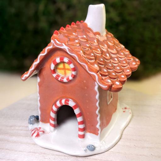 A candy house that never gets moldy! Perfect addition to your seasonal decorations. Slide in a cone of incense & watch smoke rise from the chimney!